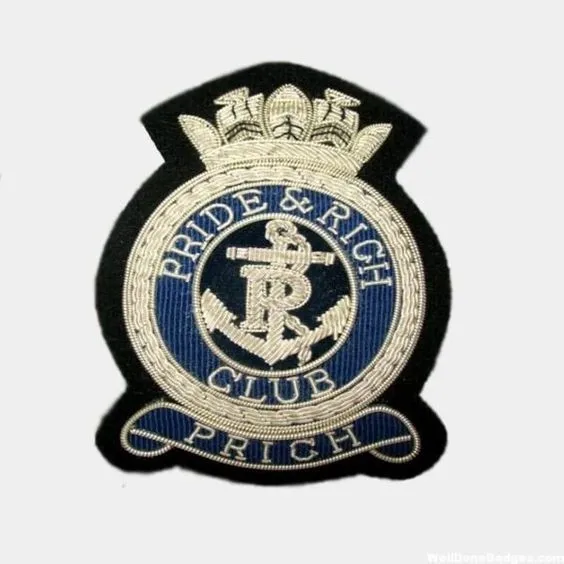 | Product Name: | Embroidered wire bullion blazer badges pocket crest patches | ||