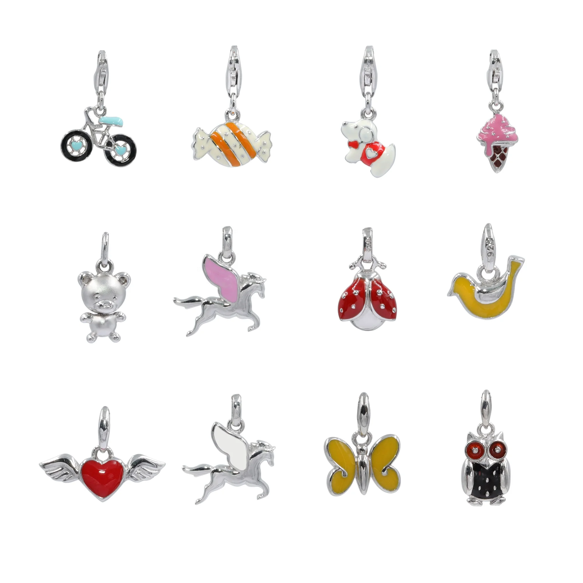 925 Sterling Silver Jewelry Silver Bracelet Charms Enamel Charm Pendant Silver Tree Pendant Bag Pendant Kids Jewelry