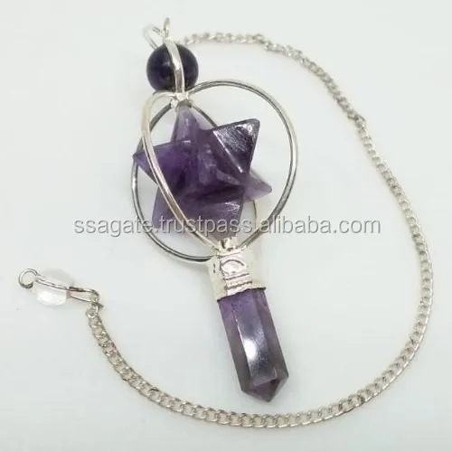 Blue Amethyst Merkaba Metal Mounted Pendulum Wholesale Merkaba Star Pendulum Buy Online From S S AGATE