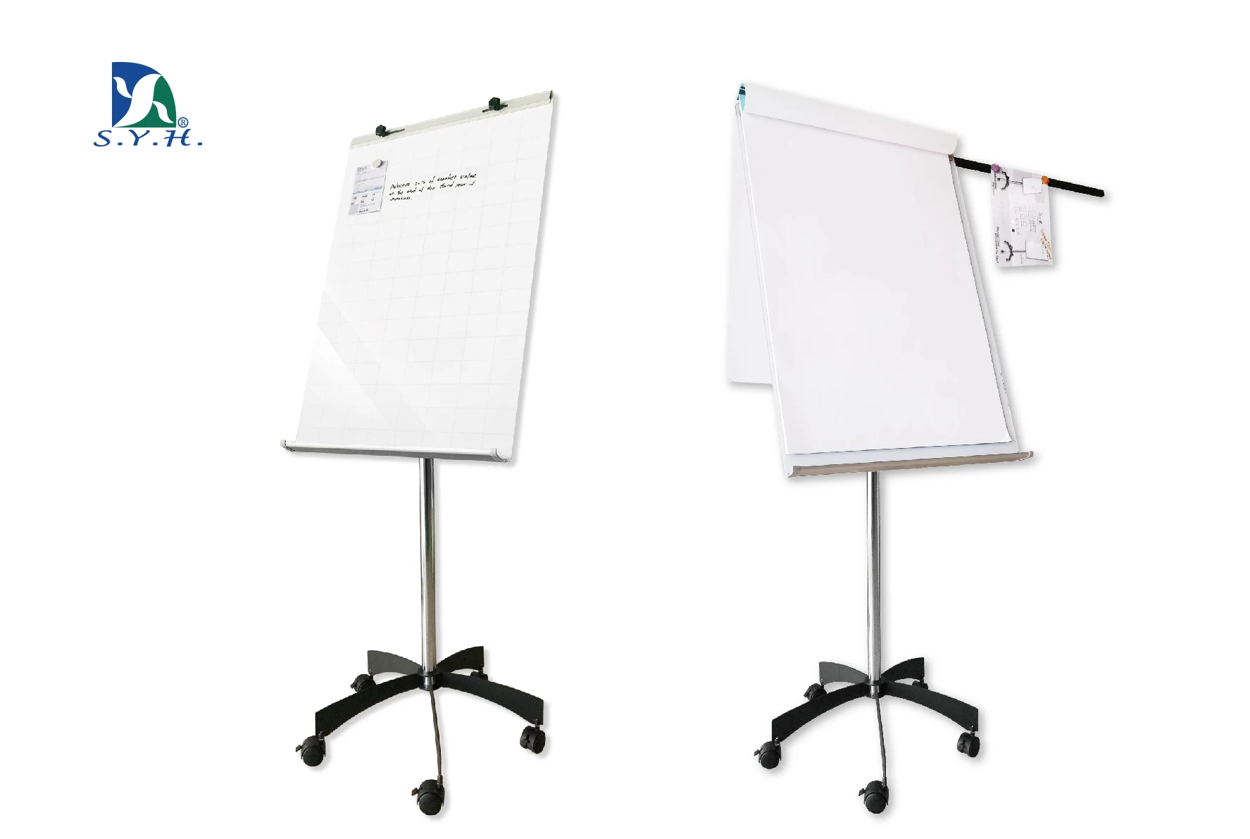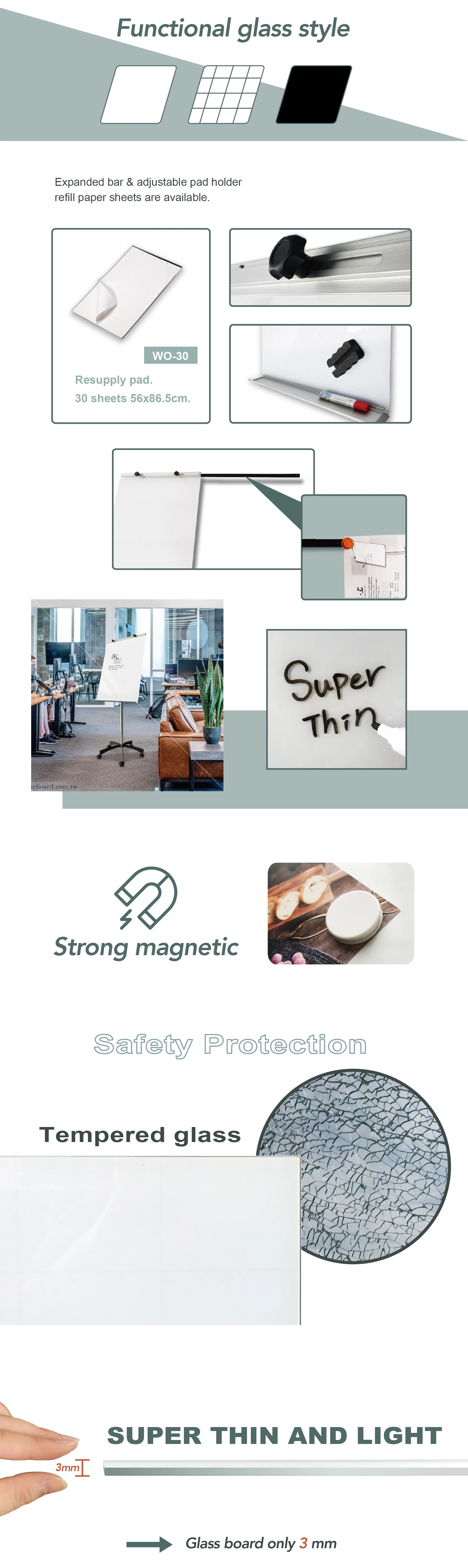 Magnetic tempered mobile glass whiteboard flip chart