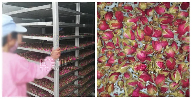 Persimmon Rose and Date Palm Dryer is working through compressor to produce high temperature and high pressure gas enter into condenser to release heat ,the heat will be send into chamber by circulation fan .The dryer temperature reach 20~80degree centigrade.