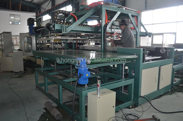 3. Unformed PS placing unit, the feeding of PS foam sheet is automatically driven by cylinder, rubber covered roller is used to unroll the PS foam sheet. Photoelectric switch control, and contain two PS foam sheet rollers. Taking turns utilization.