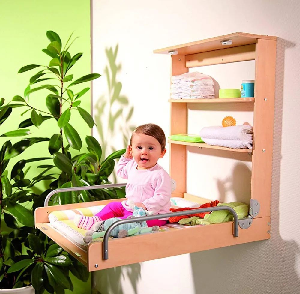 The table is solid and securely hangs upon the wall with two strong hinges in order to change baby safely. You can