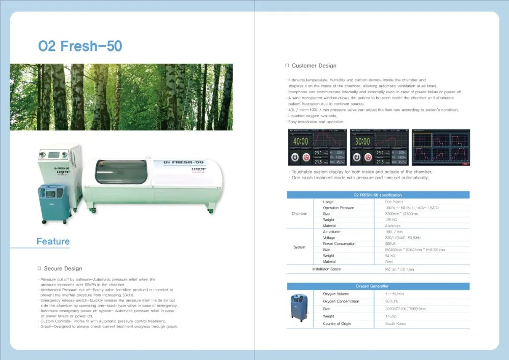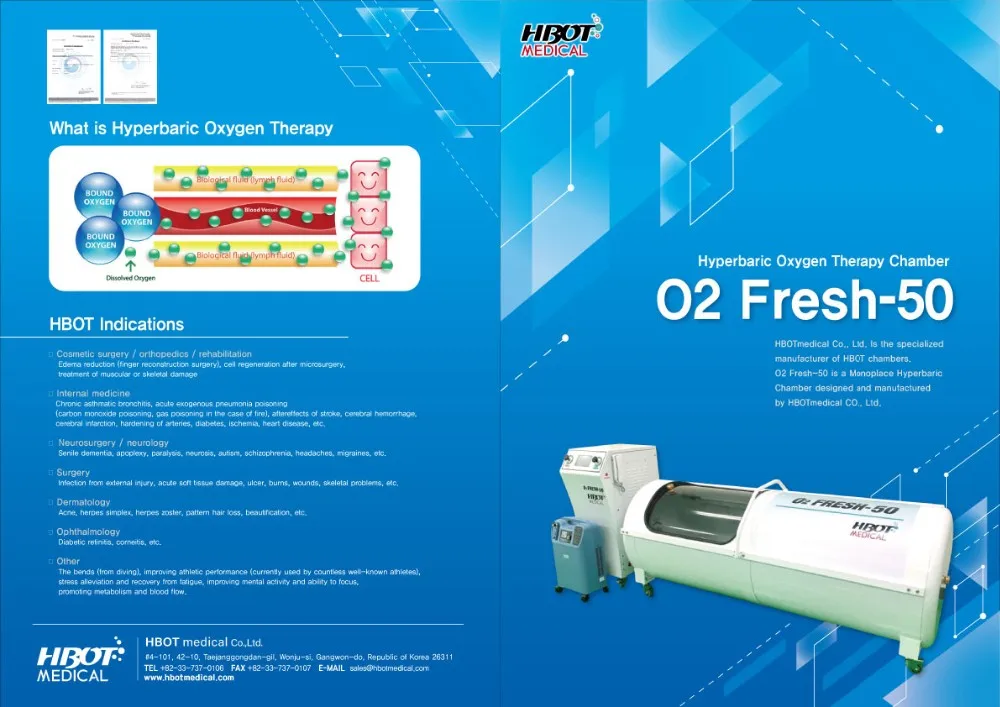 We, HBOT Medical Co., Ltd. are the professional manufacturer of hyperbaric Oxygen chambers chambers in South Korea. Designed and manufactured by the experts who have more than 15 years of experience in development in hyperbaric chambers. We have developed products with upgraded functions, performance and quality. Our goal is to be the world's leading manufacturer of hyperbaric chambers.