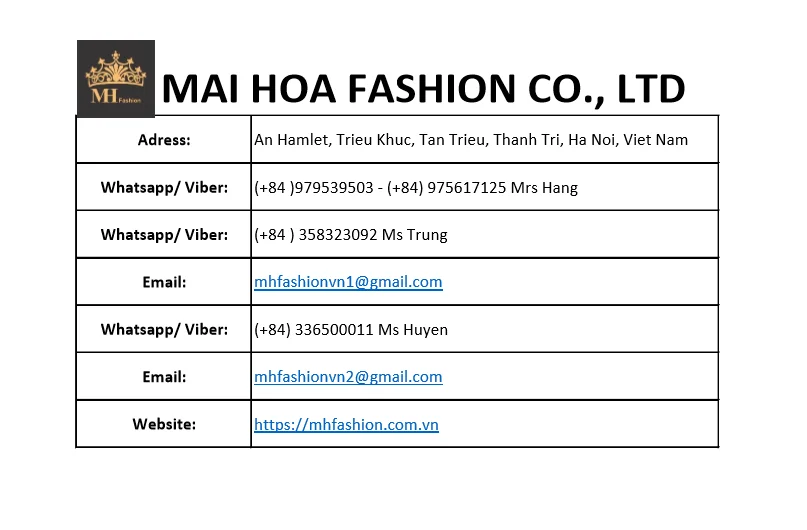 Established officially in Vietnam since 2009, MH Fashion with the spirit of solidarity of the collective dynamic and constantly learning, investment in new technology, growing in the design, management and organization of production made to help the company fulfill the mission that I set out to be: