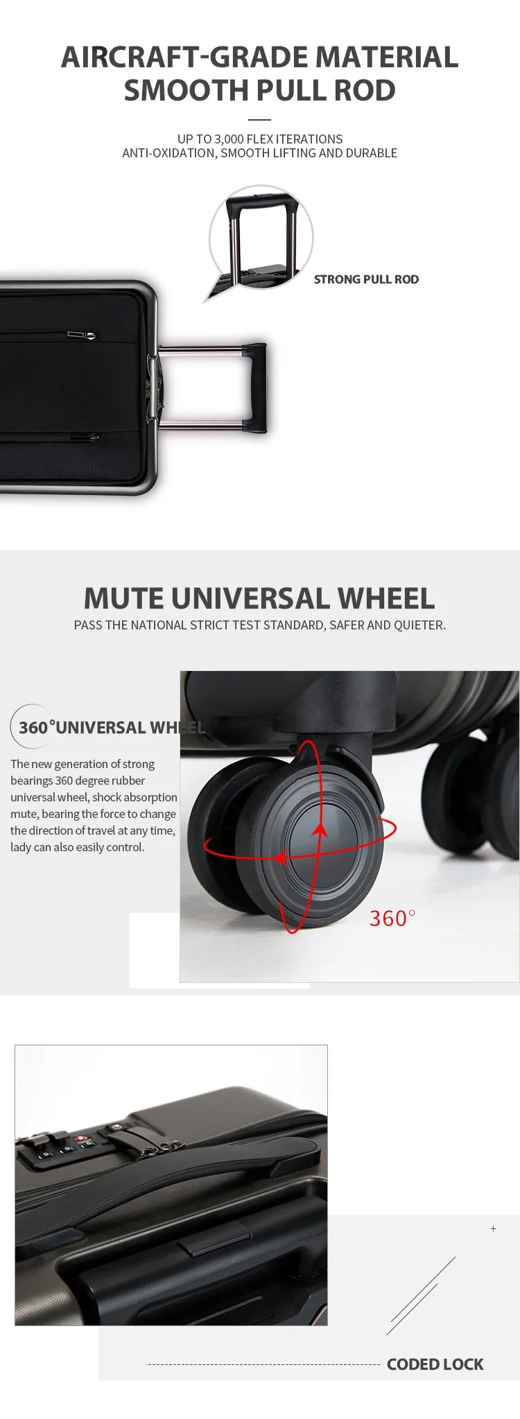 A: The trolley luggages we offer have ten-year warranty. If they do have quality-related problems, please feel free to inform us, and we will try our best to make you pleased.