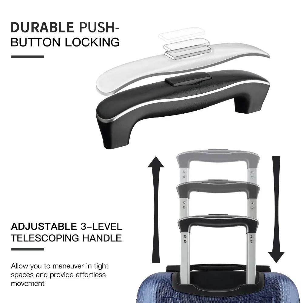 The double-tube retractable handle makes it easy to control the suitcase. The handle can be retracted when not in use using the handy push-button release mechanism. The smooth, chunky zippers make it easy to open and close the suitcase, and can be secured together using the 3-digit combination lock supplied with the suitcase. Top and side grip handles make it easy to load and unload.
