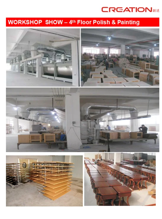 Employees: Creation have 295 professional skilled workers ,professional sales team, professional production team ,Creation have great ability to produce high quality furniture according to customer’s different designed furniture.