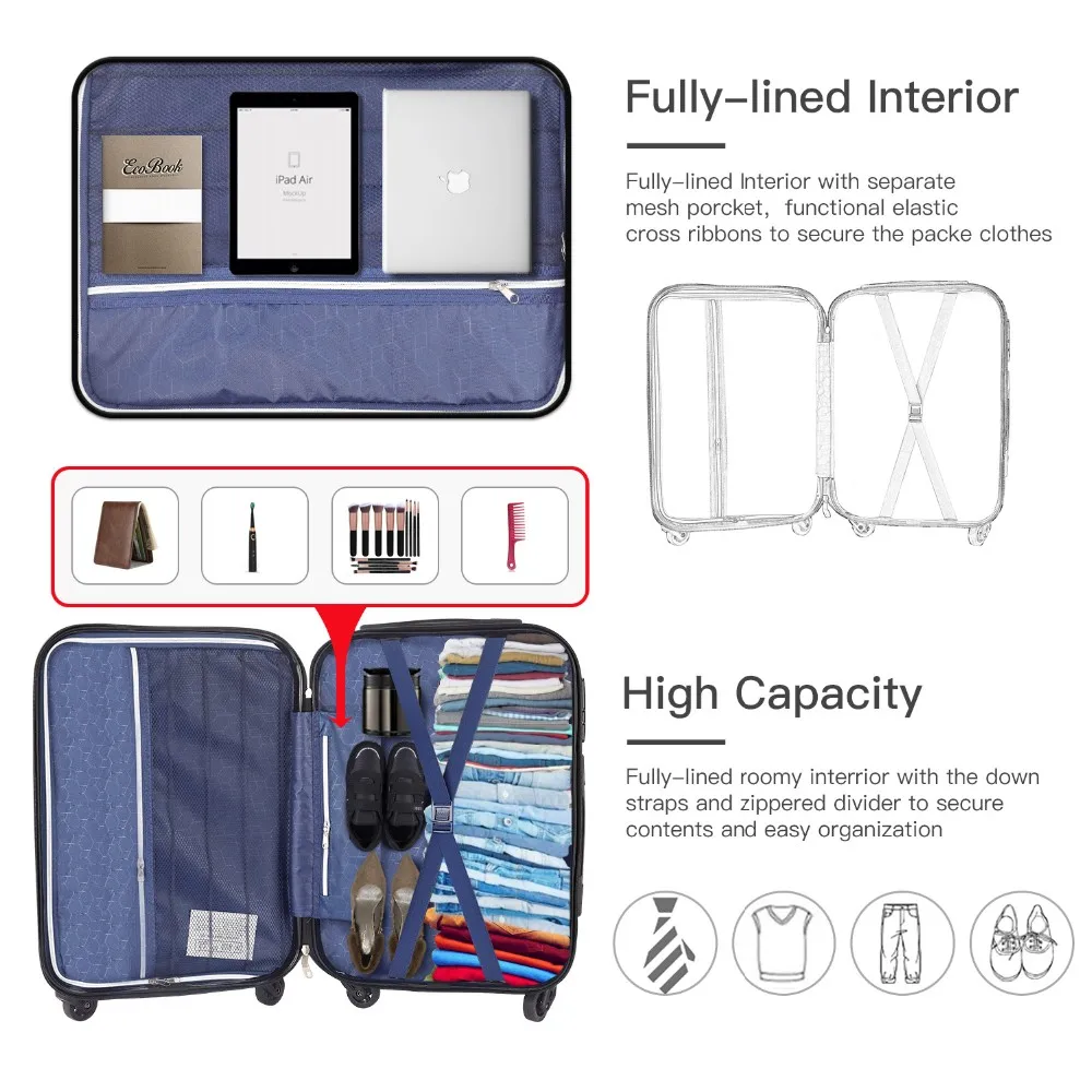 Luggage set trolley travel carrier luggage size smart suitcase handles