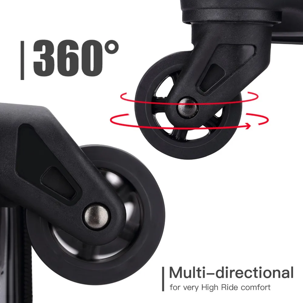 The new generation of strong bearings 360 degree rubber universal wheel, shock absorption mute, bearing the force to change the direction of travel at any time, lady can also easily control.
