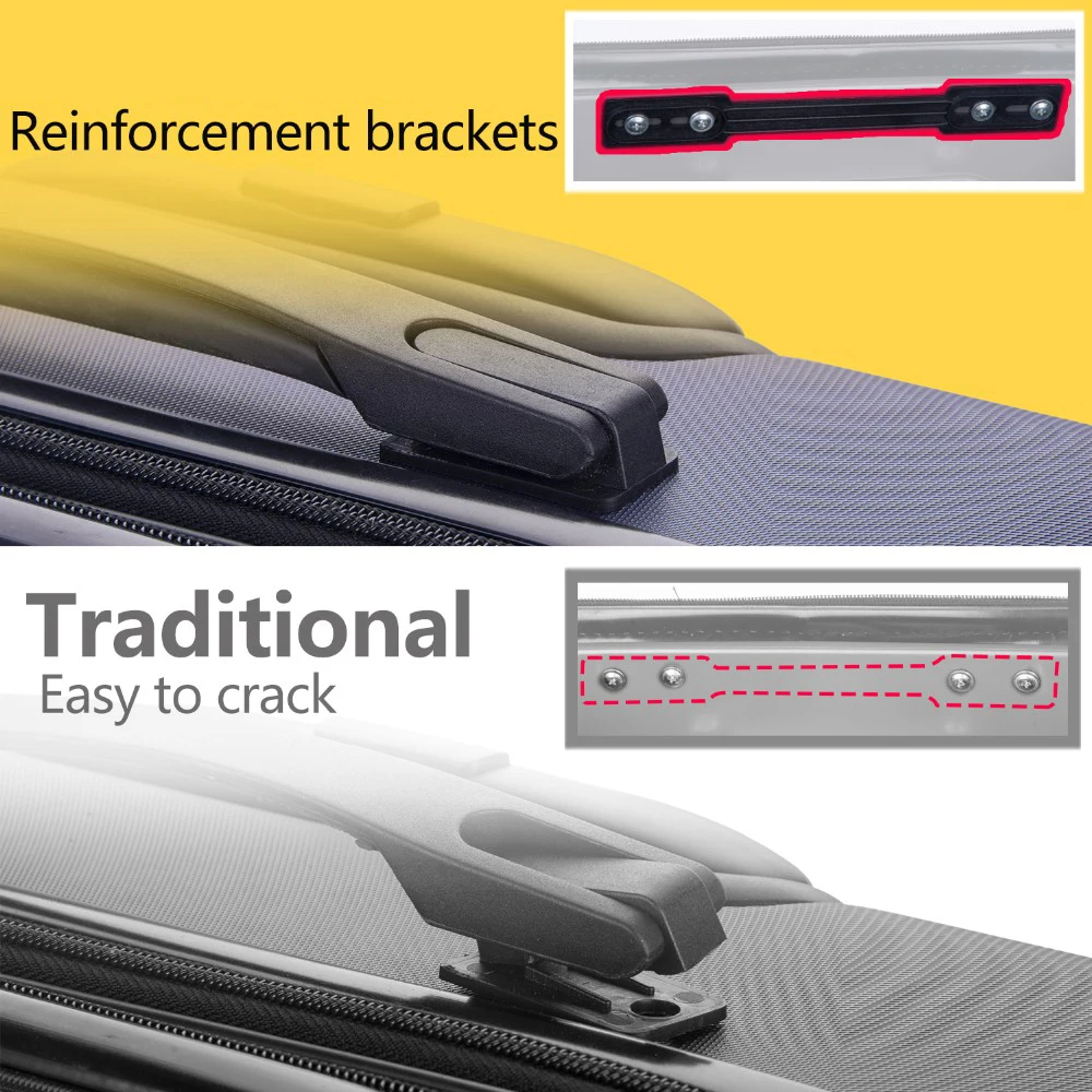 The double-tube retractable handle makes it easy to control the suitcase. The handle can be retracted when not in use using the handy push-button release mechanism. The smooth, chunky zippers make it easy to open and close the suitcase, and can be secured together using the 3-digit combination lock supplied with the suitcase. Top and side grip handles make it easy to load and unload.