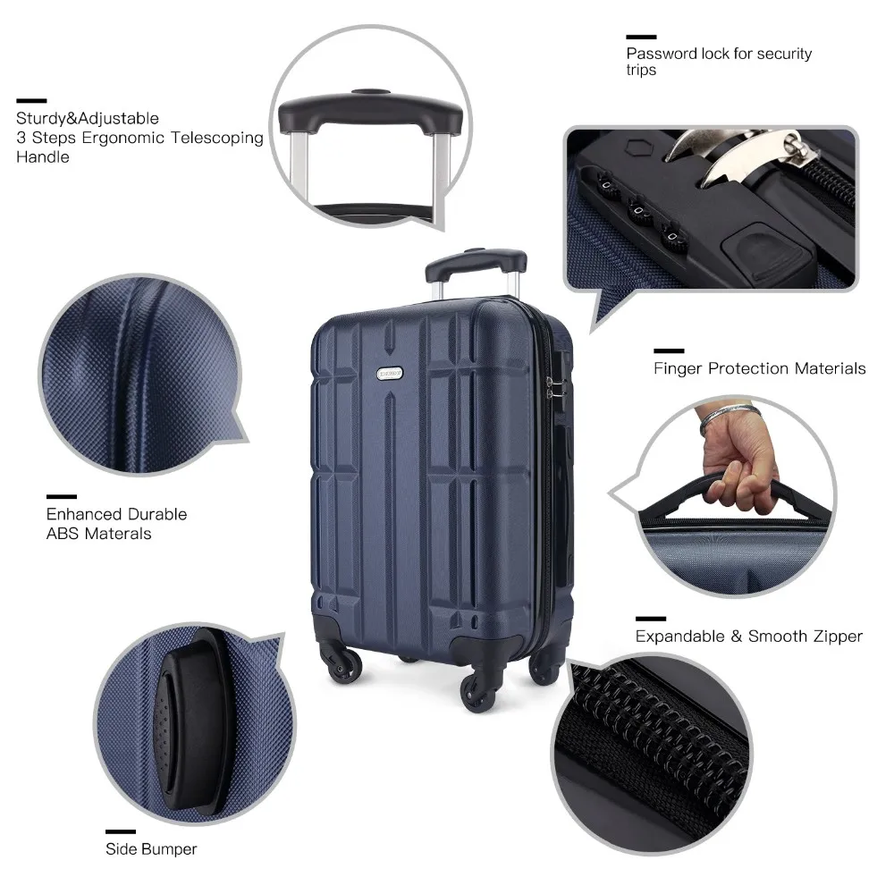 ABS Travel Trolley Rolling 360 Luggage Suitcase