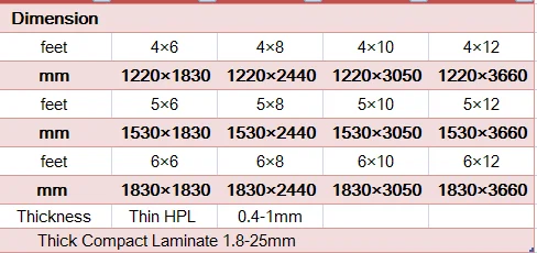 | Size | Thickness | Colors | Stocks | Lead Time |