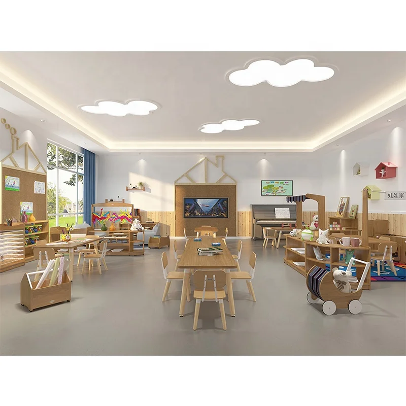 2020 Hot Sale Birch Plywood Shelvings Wooden Cabinets Children Tables and Chairs for Kindergarten Daycare Center is suitable for kids education centers and montessori schools. It is widely used to creat a natural and comfortable learning environment for kindergarten, pre school, daycare, child care center, nursery, creche, and some international schools.