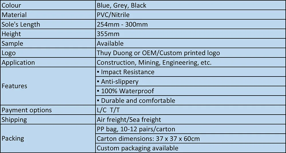 High Quality PVC Safety Work Boots Steel Cap and Steel Sole Gumboots for Construction, Mining, Engineering, etc