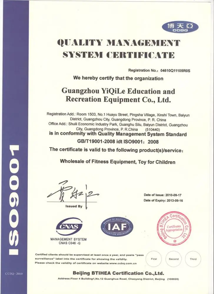 Certificate | CE, TUV, EN1176, European standard, Gold supplier with 2 years experience on Alibaba |