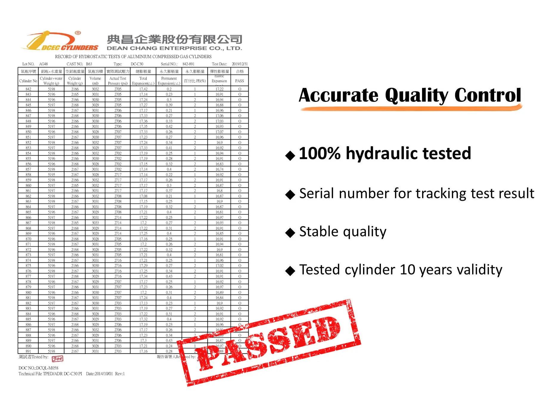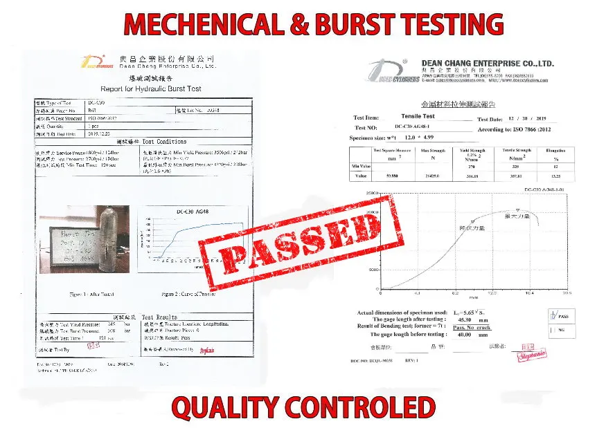Each cylinder is 100% hydraulic tested and manufactured in accordance with TPED ISO7866 standard to assure the quality.