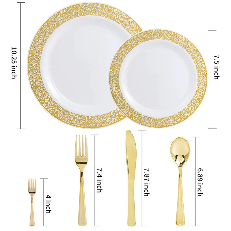 150 шт. Золотые пластиковые тарелки с одноразовой пластиковой посудой, кружевные дизайнерские пластиковые столовые наборы, товары для дня рождения, свадьбы, вечеринки