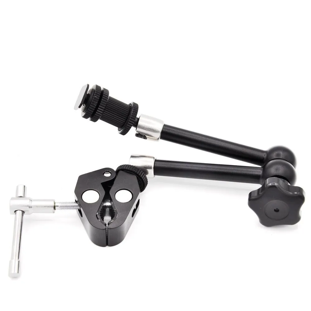 11 Inch Adjustable Articulating Magic Arm Friction Power & Large Super Rod Clamp Crab Pliers Clip with 1/4" and 3/8" for DSLR Camera Rig / Microphone / LCD Monitor / Flash Light