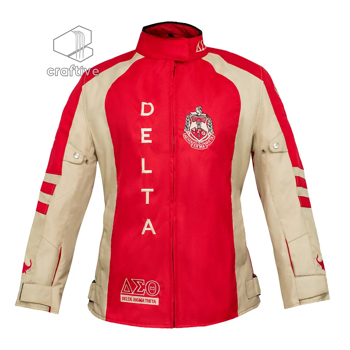 DST Sorority Jacket made of Fleece with White color strips.