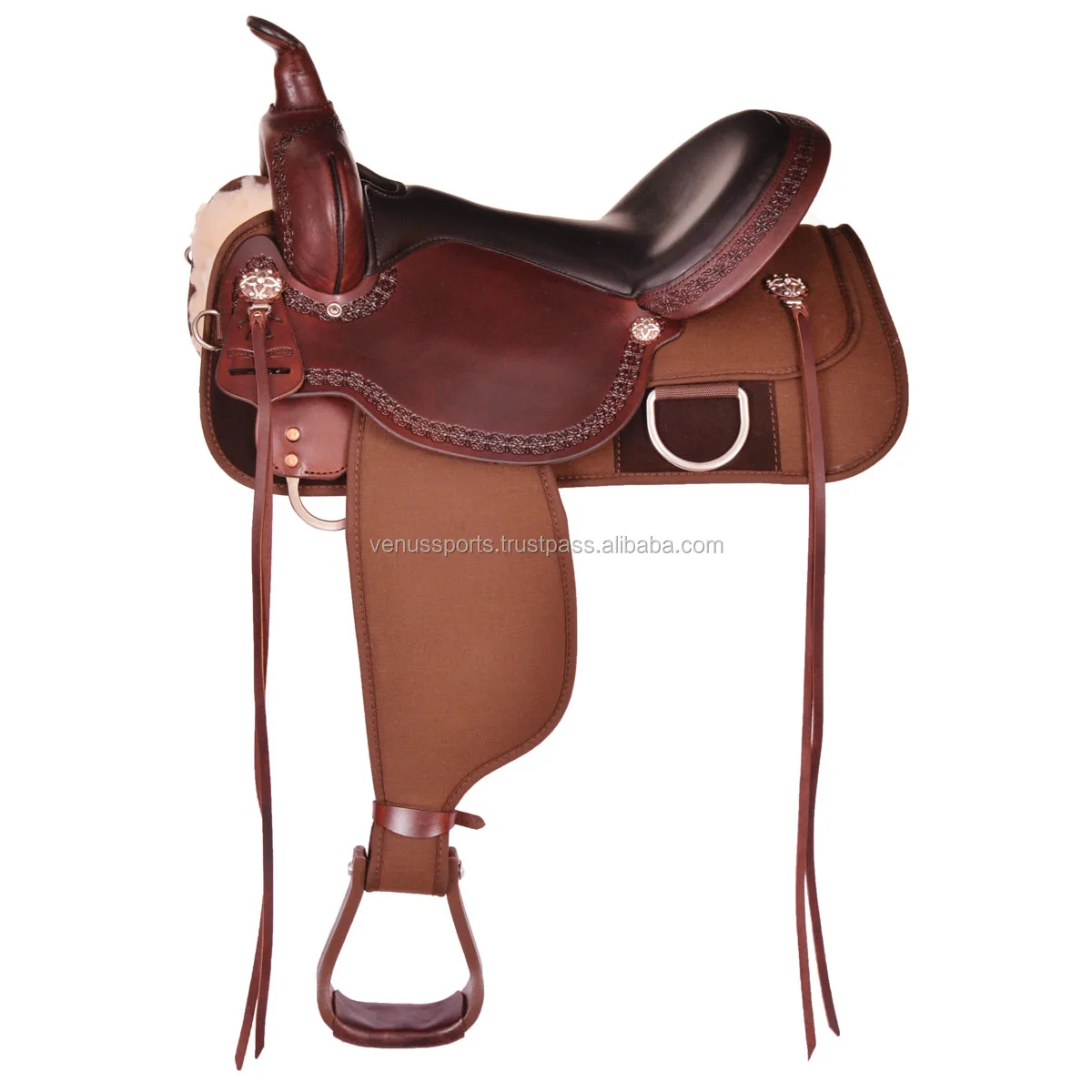 Traditional western style saddles use carving leather for all the exterior parts that you can see, other than the seat, which is often made from roughout or sueded cowhide.