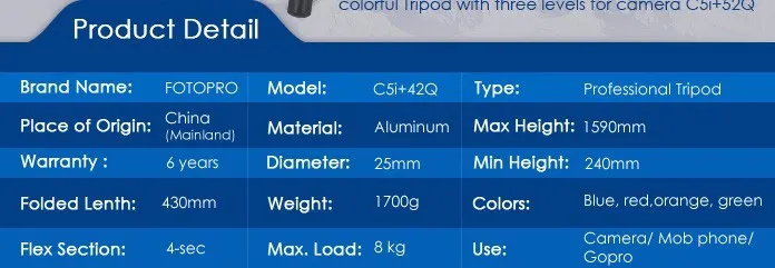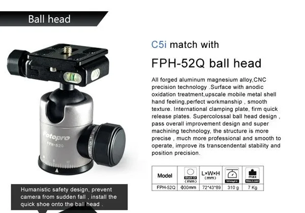Includes FPH-52Q Ball head w/Arca Swiss QS plate