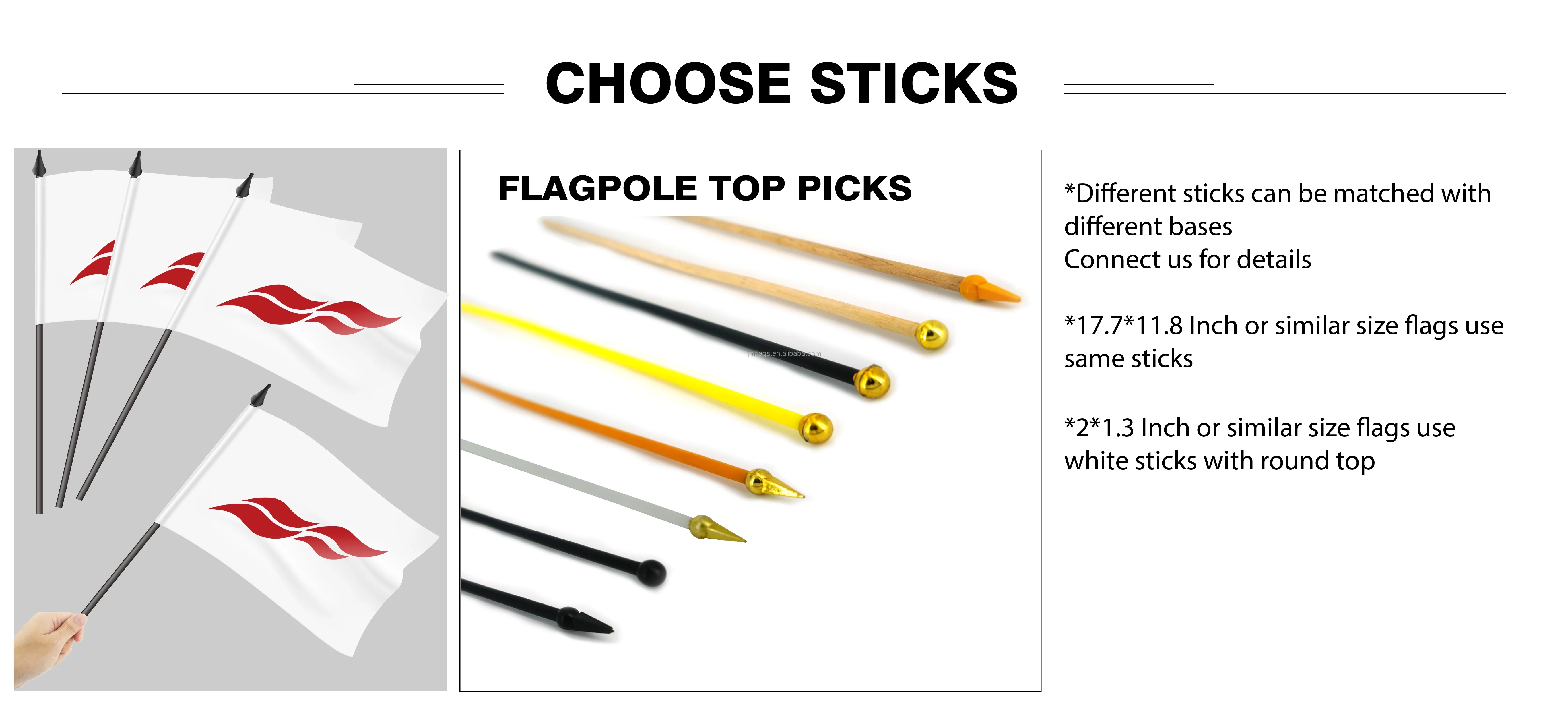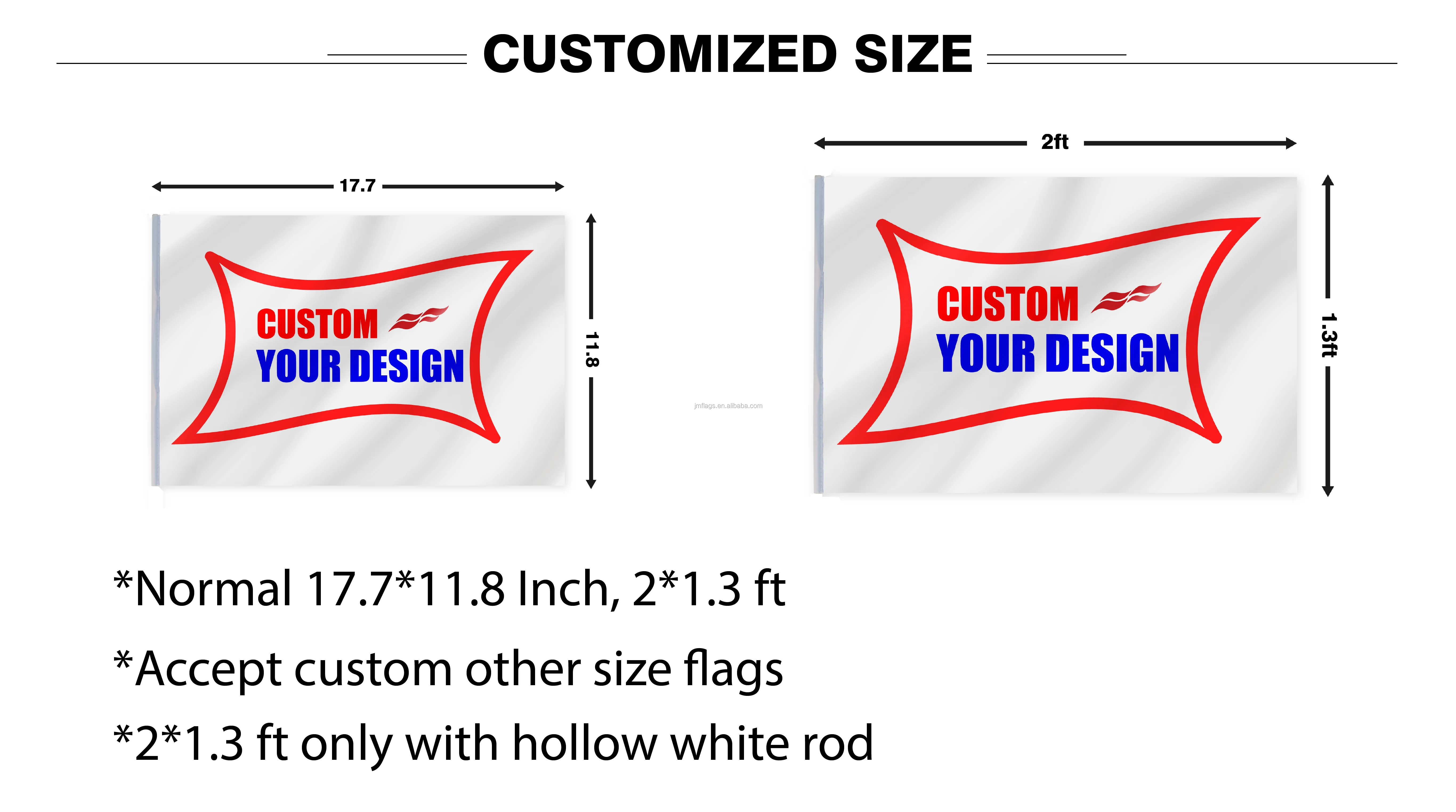 Specification | 17.7'' x 11.8", 23.6 inches stick | Other Flag Sizes and Poles contect us | |