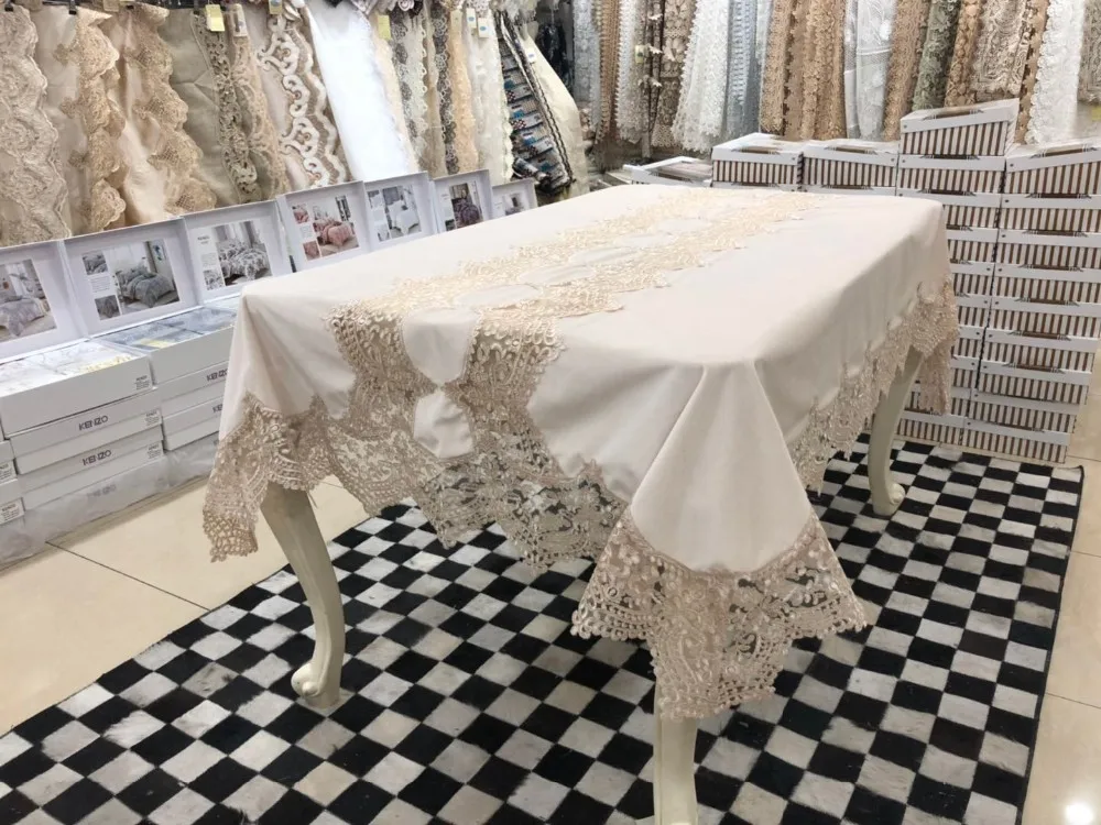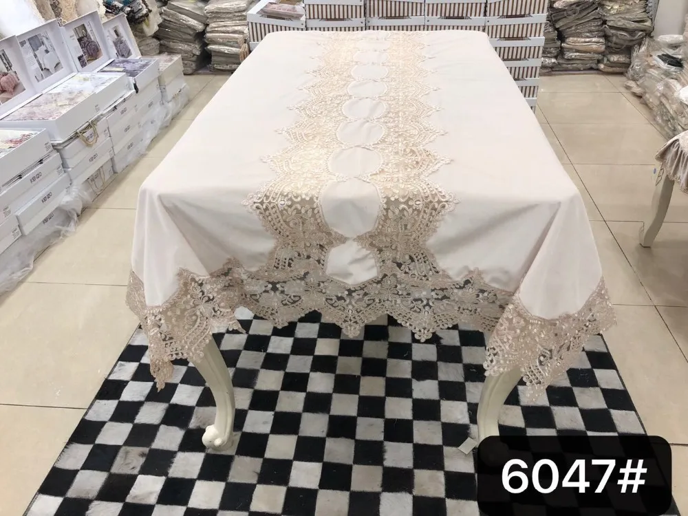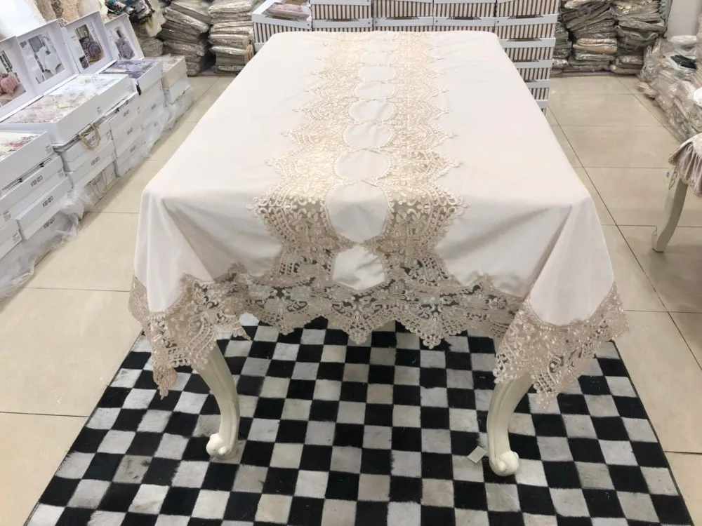 European Kitchen Polyester Wedding Beaded Sequin Lace Table Cloth Sets 16pcs