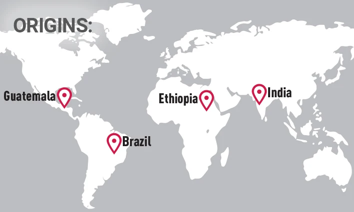 THE BEANS - Brasile and Guatemala, Ethiopia and India for a slow toasted blend.