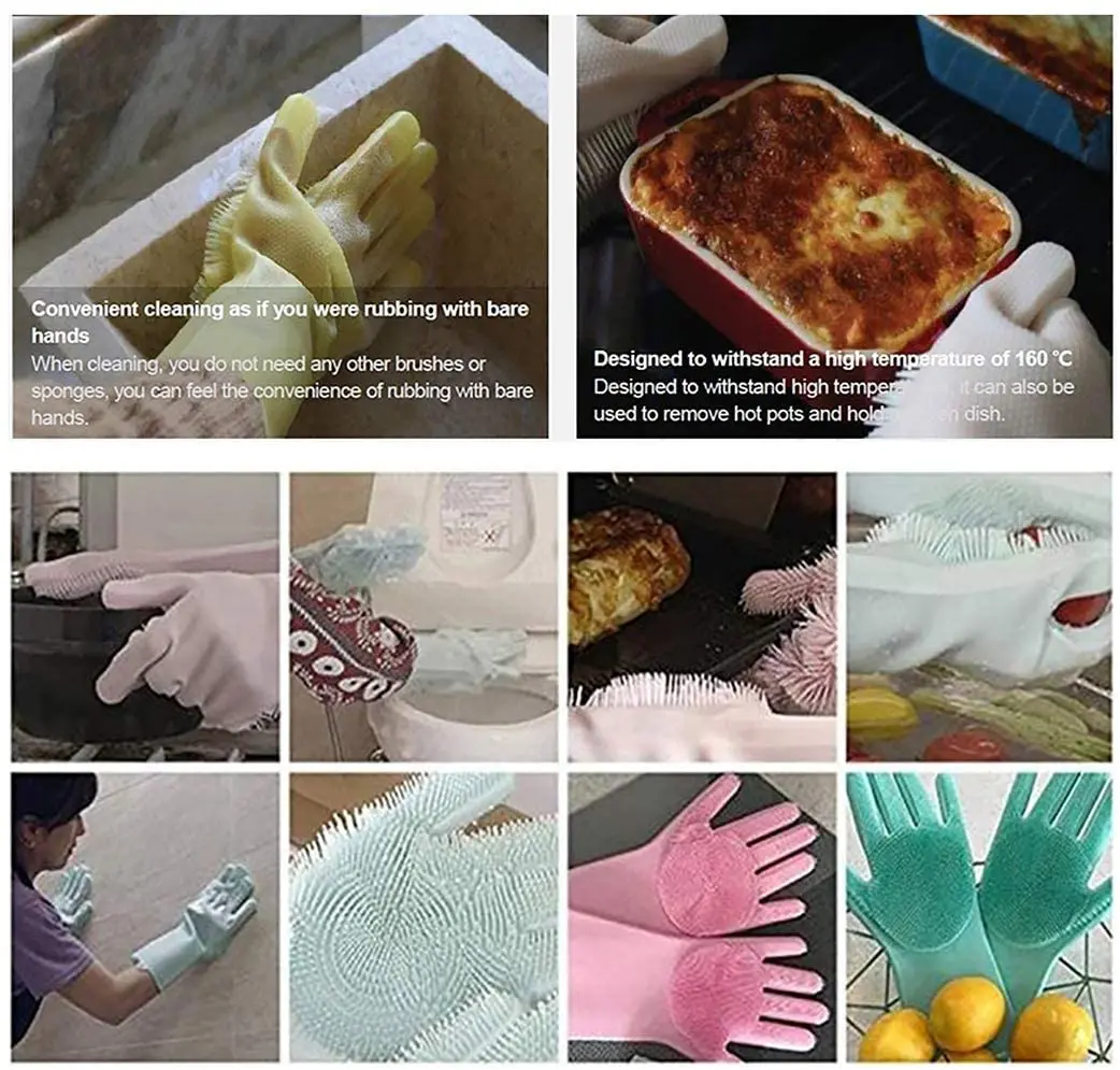 Name:Silicone reusable cleaning brush heat resistant scrubber gloves | ||