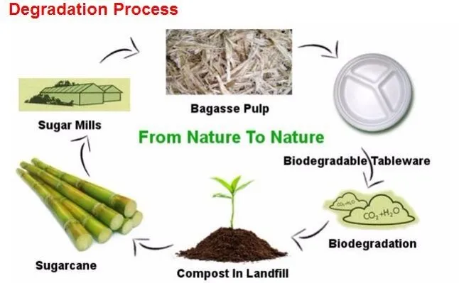 With bagasse and bamboo pulp as raw material, the products are 100% degradable, odorless, no-toxic