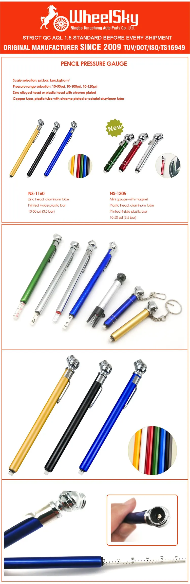 Prucuct Name | Wheelsky Promotion Colorful Auto Vehicle Car Motorcycle Bike Pencil Pen Type AirTire Pressure Gauges | ||||||