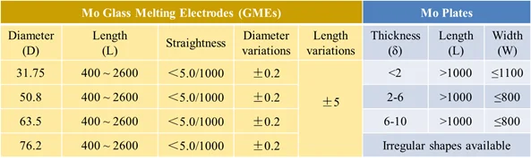 Molybdenum is the most frequently used electrode material to deliver electricity into the glass melts, such as daily glass, optical glass, thermal insulation material, glass fiber, etc.