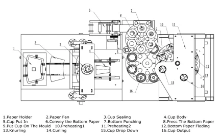 G. Switzerland Leister heating device is equipped for cup body and bottom sealing, bottom are heated at first before they are feeding, thus improving heating effect and helping guarantee knurling.