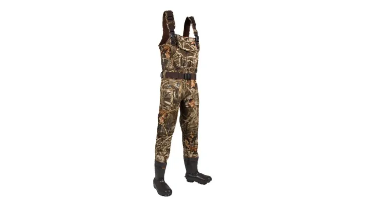 Fujie Mens 5MM Dura-Stretch Max-4 Bootfoot Wader - Extend your hunting time in the coldest weather with the 5MM Dura-Stretch Neoprene bootfoot wader, with 1600 Grams of insulation and fleece lining for maximum warmth and added comfort. This Dura-Stretch Wader has addtional padding on the knees and rear with plenty of functional pockets including a handwarmer pocket on the front, a flip-out chest pocket, 2 additional Velcro pockets on the front and 2 lower front pockets with drainage.