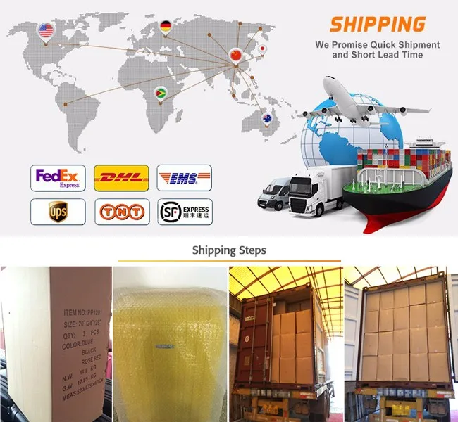 20" 24" 28", normally 3pcs/set to put into bubble bag with foam protection; then use K=K strong master carton as outside packaging