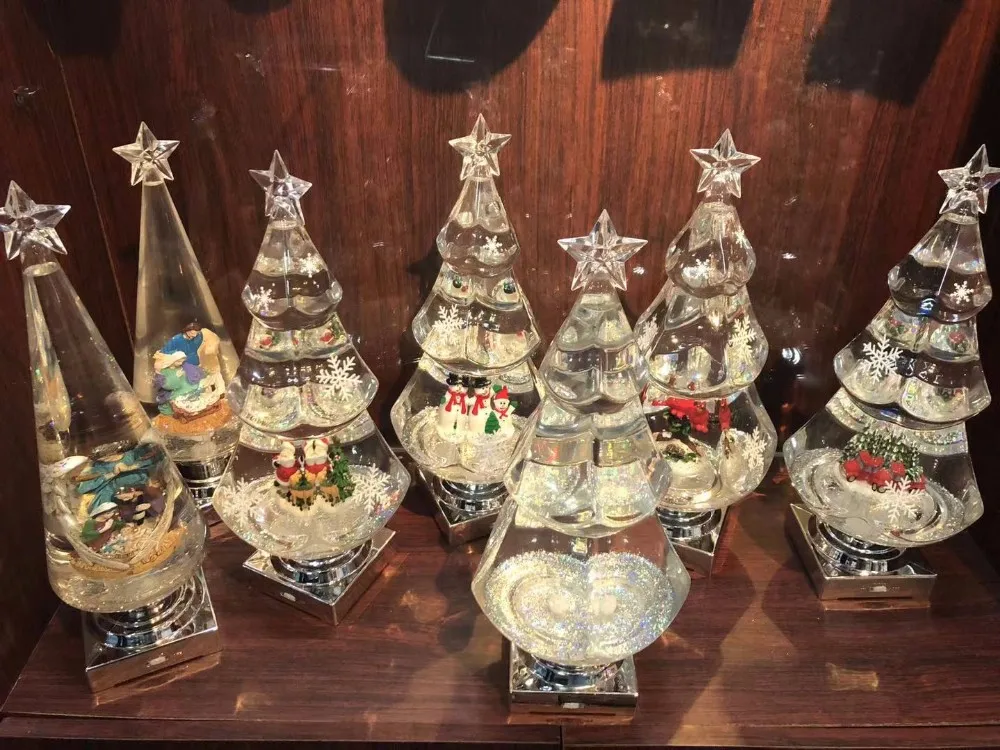 resin inner house scene with solid wood base water snow globes