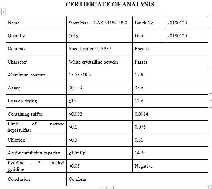 In acidic environment, saccharin can dissociate into sucrose octsulfate polymer, which can stick to the bottom of ulcer and bind to gastric mucosa protein, forming a barrier to protect gastric mucosa.It binds to egg gate enzymes.Inhibition of its protein decomposition activities, the effect of longer;It has the effect of neutralizing gastric acid.