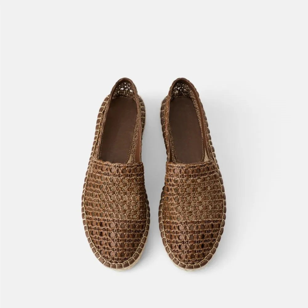 MANRINO-0260 Brown Color Slip On Hemp Rope Fabric Soft Thick Sole Rubber Knitted Wool Upper Womens Flat Fisherman Shoes