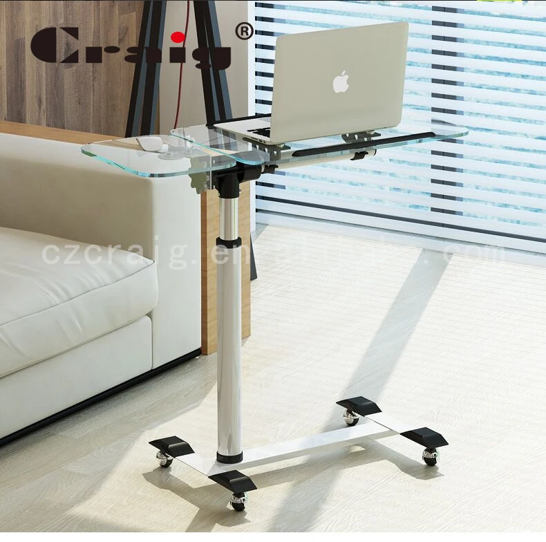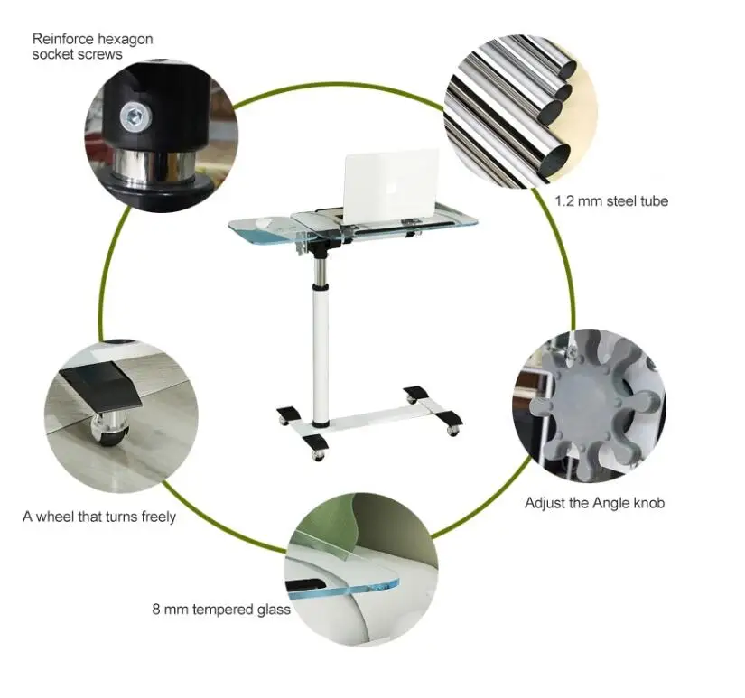 [High Quality Material] Main table and vice table use 8 mm tempered glass. Main table with computer table stalls for easy anti-slip. We match 50 mm diameter steel pipe (round pipe) and base four movable wheels.