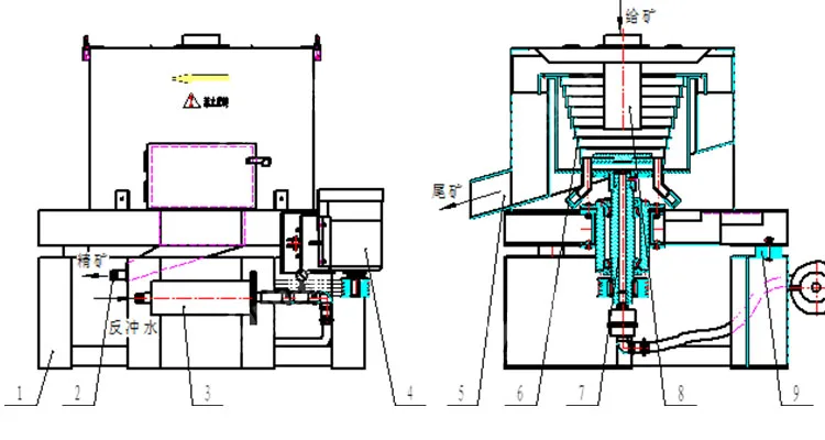 Model | Capacipy(t/h) | Power(kw) | Slurry Water(L/min) | Recoil water(L/min) | Concentrate output(Kg/time) |