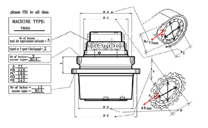 | Maximum input flow(L/min) | Motor displacement (ml/r) | Work pressure (Mpa) | Brake release pressure (Mpa) | Reduction ratio | Theoretical output torque(N.m) | Theoretical output speed(r/min) |