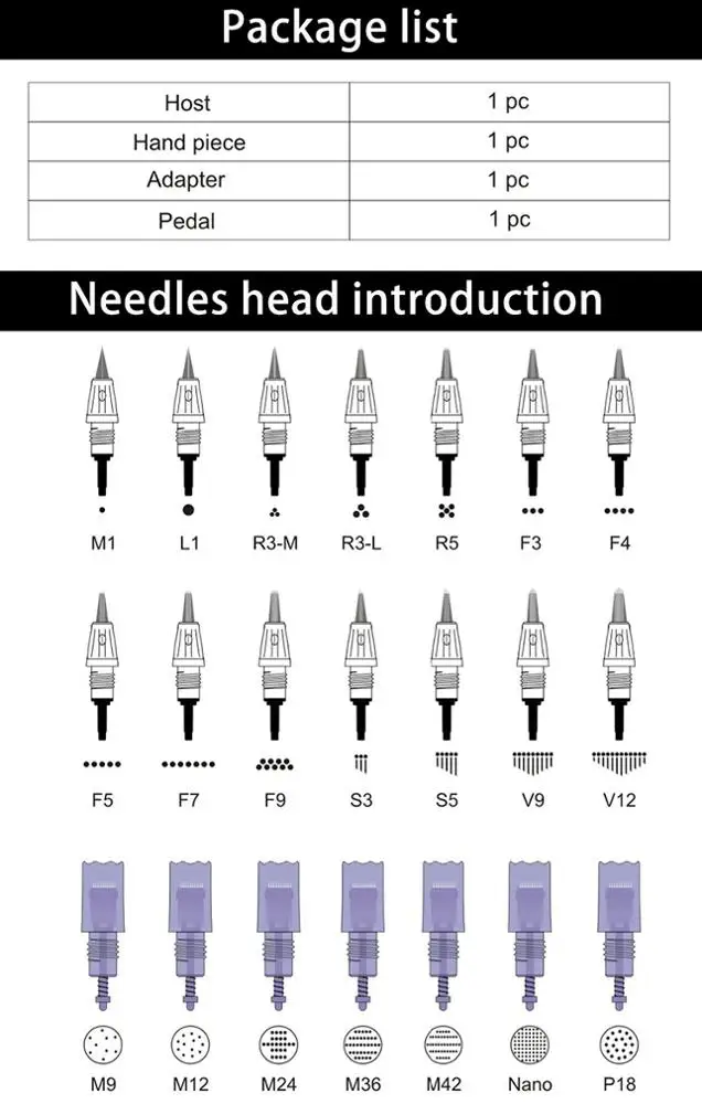 6x Needle cartridges(3 pcs of 1 pins,3 pcs of 12 pins)