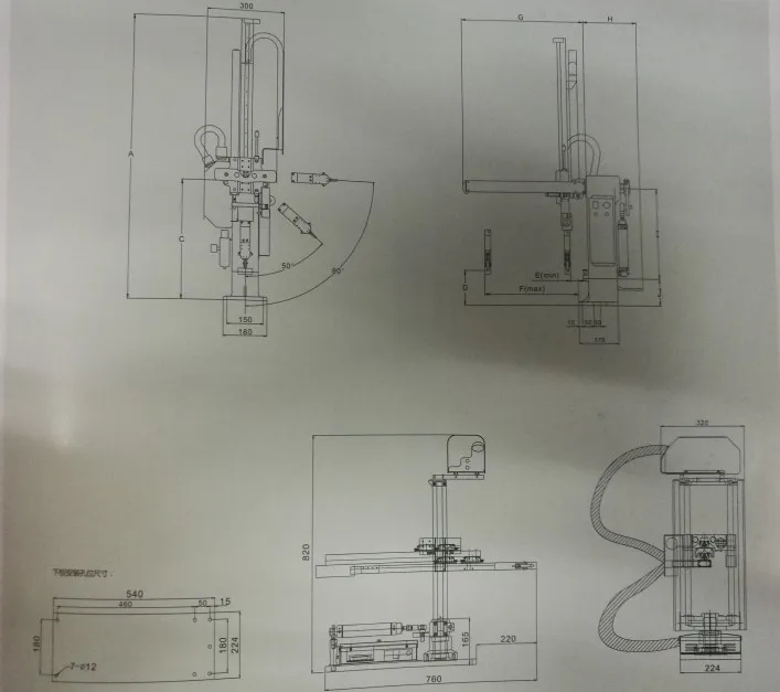 E-series oblique arm robot is mainly suitable for 50~220T horizontal injection molding machine to take out the runner.