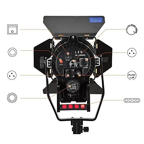 ★CE-1500WS LED Spotlight is a focusable spotlight used in film, television, and theater lighting, which can be adjusted via a knob on the back of the light from "spot" for a narrowly focused beam, to "flood" for a wider beam.