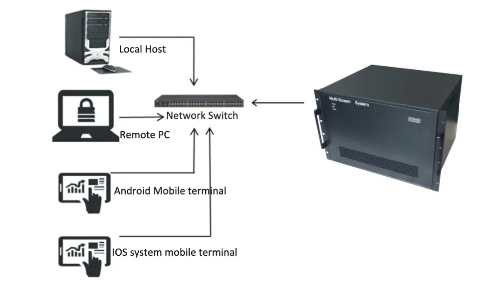 The Video Wall Controller comes with TCP/IP control card and embedded network control interface, which can realize multi-user and multi-platform management and setting of devices with differentiated permissions, and support the control operation of IOS, Android, Windows and other intelligent systems.