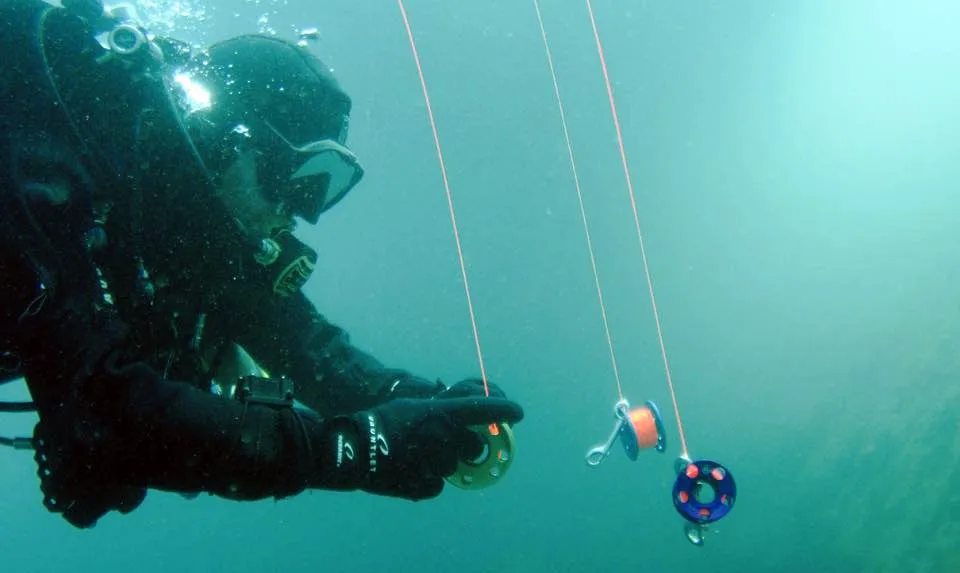 - Scuba diving aluminum alloy finger spool reel with 15M/30M/45M/50M high visibility line