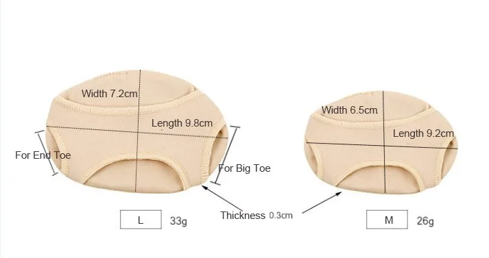 These High Quality Fabric Gel Metatarsal Ball of Foot Cushion Pads are available in the following sizes: