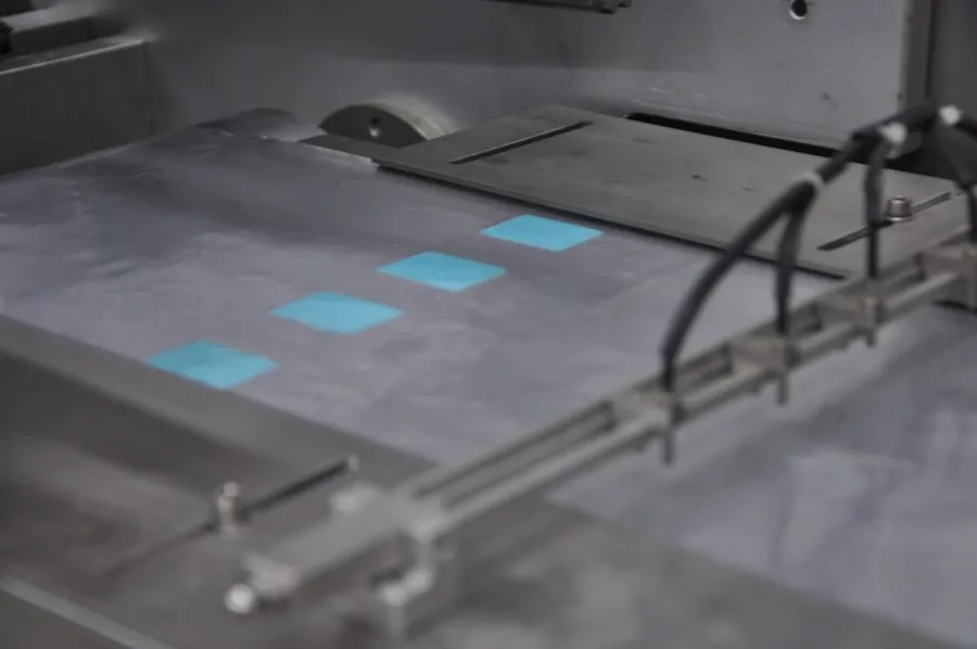 7) This machine cutting and crosscutting integration, the material can be precisely divided into a single sheet-like products, and then use the sucker to accurately locate and move the material to the packaging film, laminated, heat sealing and punching to get the finished products. The whole processing is automatic and compact.