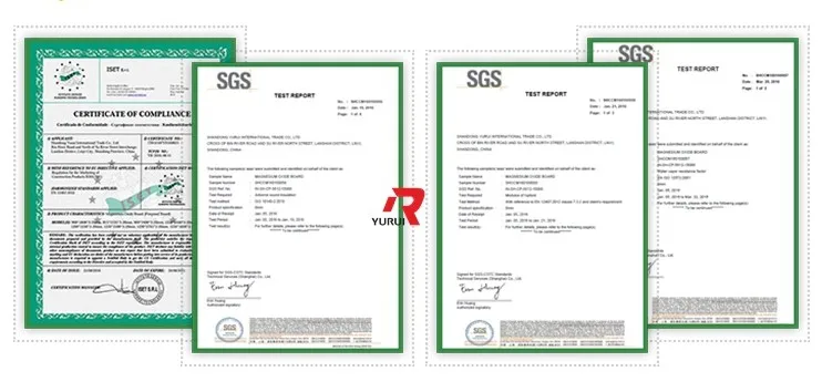 For Certificate, we have ISO9001,SGS, CE, also some test report for some physical property of mgo board.